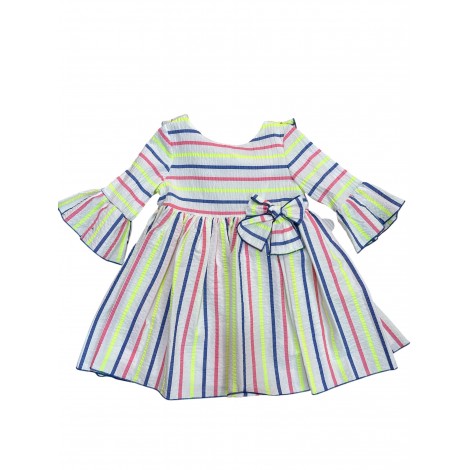 vestido niña vuelo manga francesq  RAYAS fondo hielo raya fluor-rosa y azulón LAPEPPA moda infantil verano 26